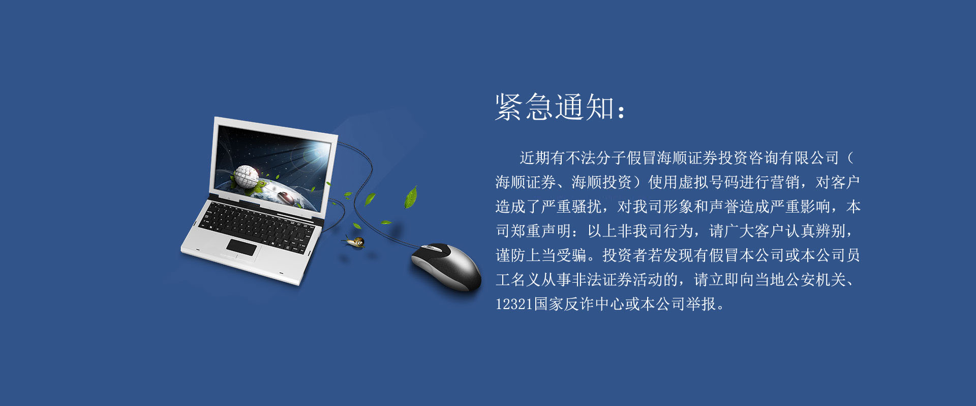 公告: 中國證監會投資者保護局提醒您:遠離微信薦股、直播薦股,防范股市網絡詐騙。中國證監會投資者保護局提醒您:線上股票群有風險,非法薦股有陷阱。
